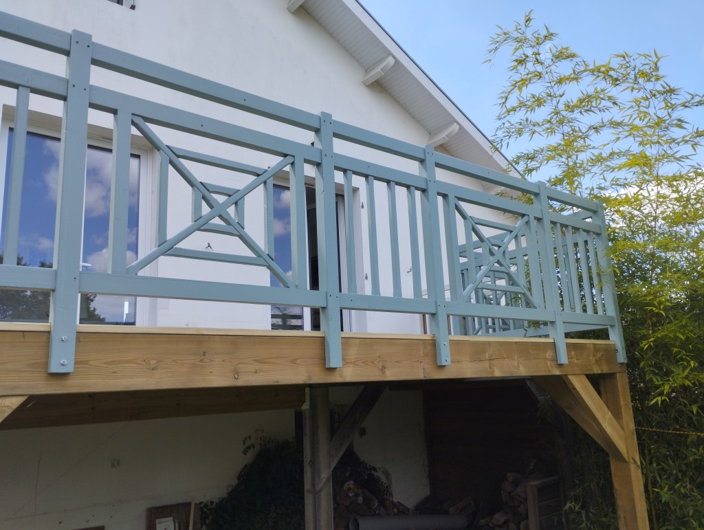 Sur un platelage en pin classe 4, la rambarde reprend le style très pronicais des croix de Saint-André pour épouser l’ambiance du littoral. On a juste envie d’étendre son transat pour sentir le soleil et profiter de l’air marin !