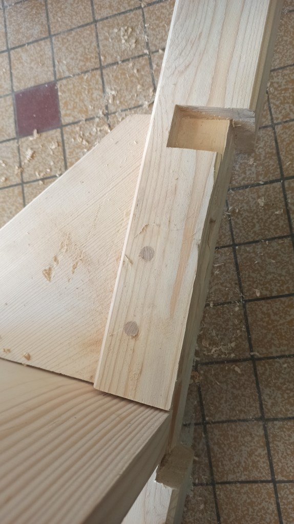 En quelques photos, appréciez les étapes de fabrication de ce petit ascenseur en sapin, lasuré chêne, destiné aux usagers du sanctuaire !