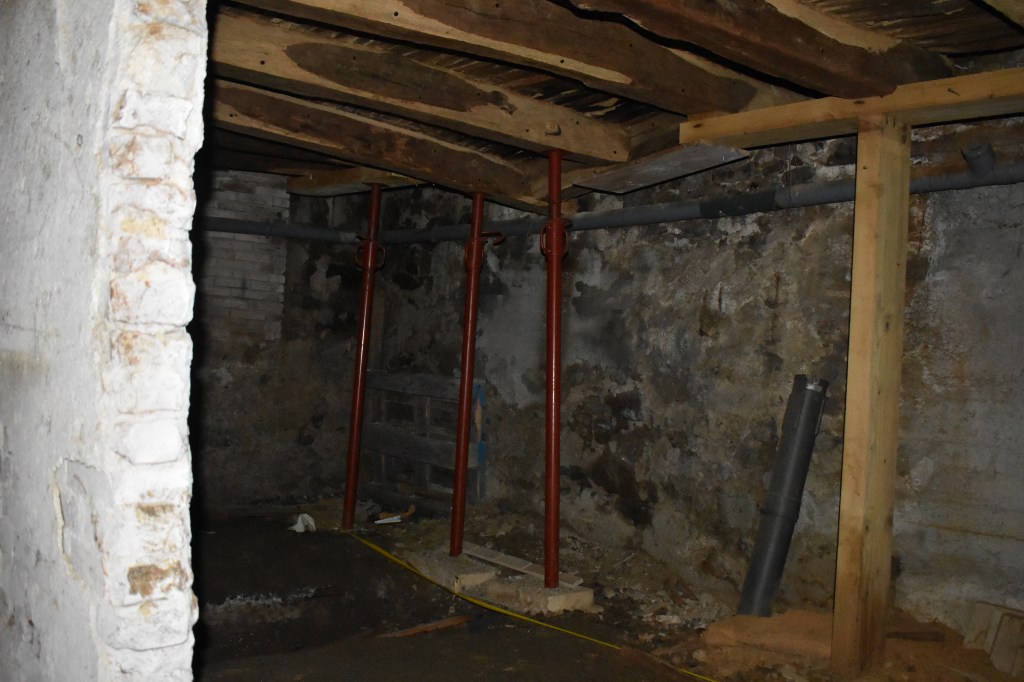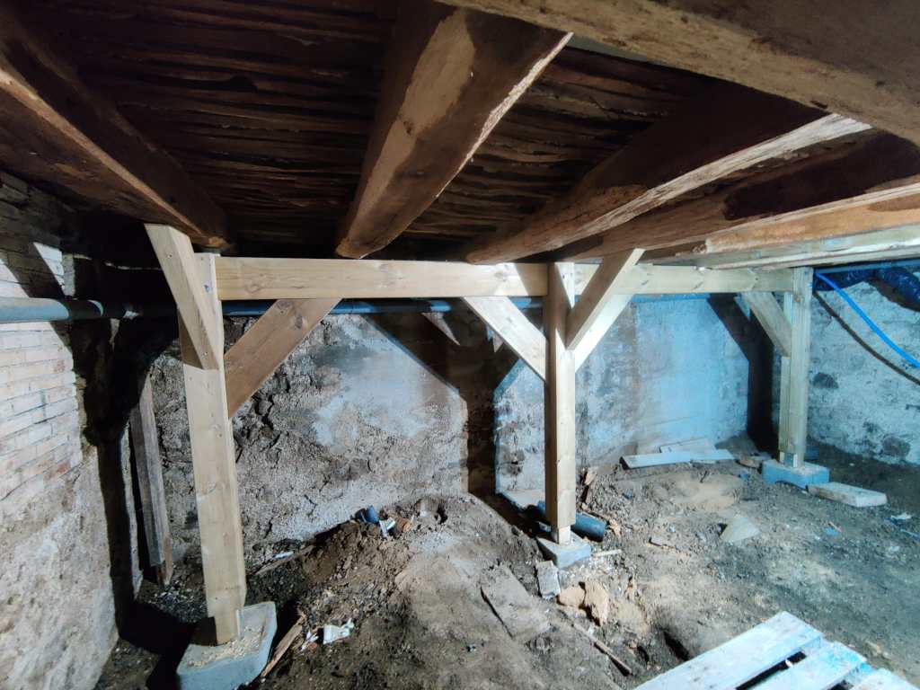 Cette vieille maison médiévale n’avait pas connu de restauration depuis plusieurs siècle, et le rez-de-chaussée ne tenait plus que sur sa chape, elle-même fendue.