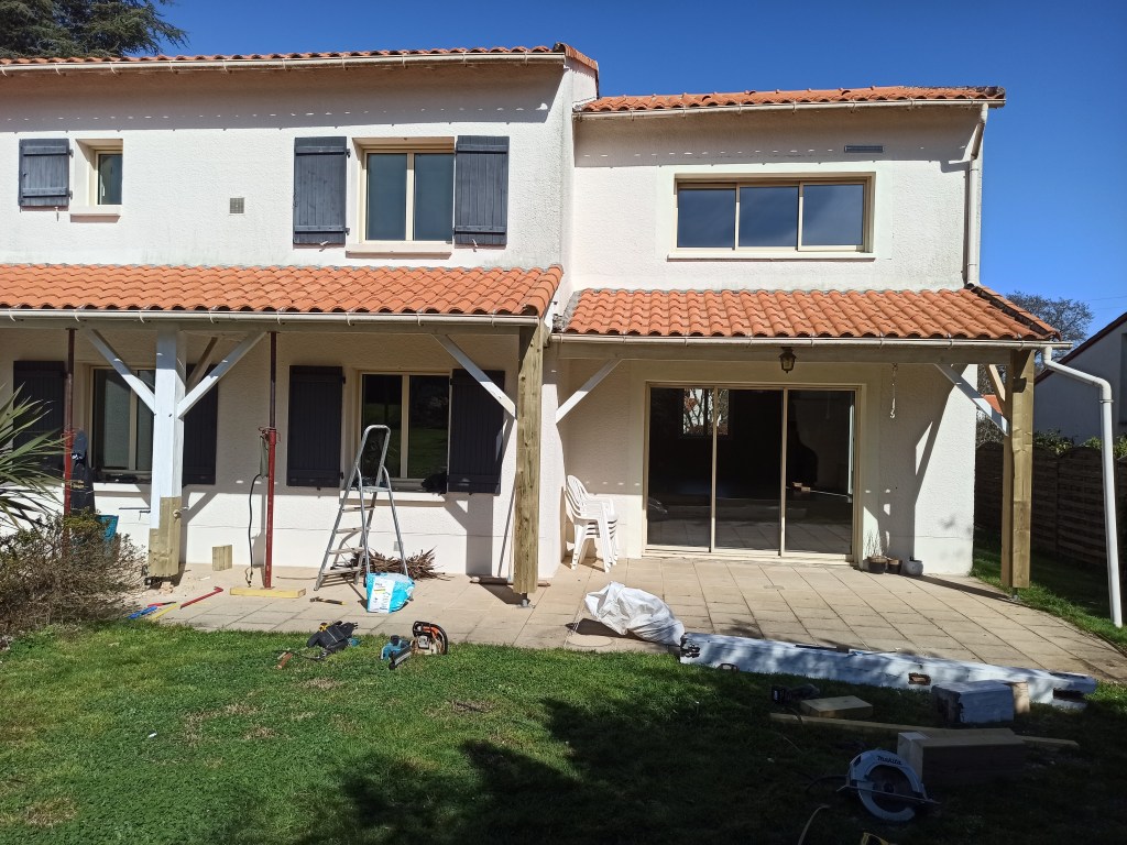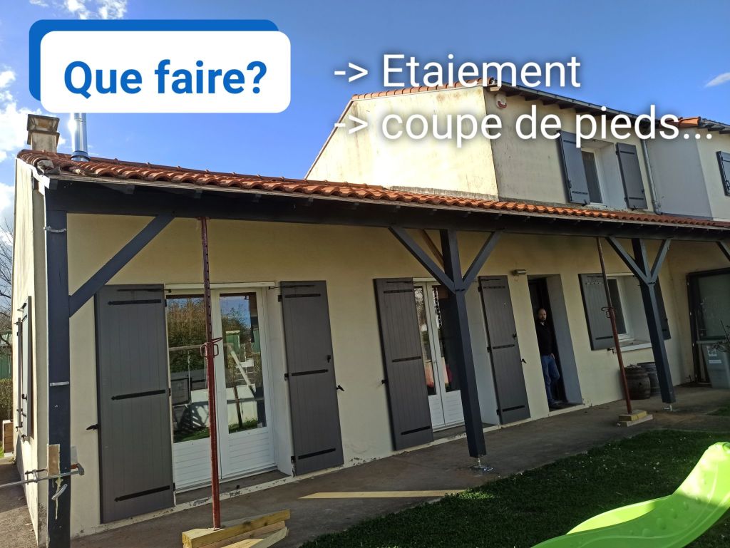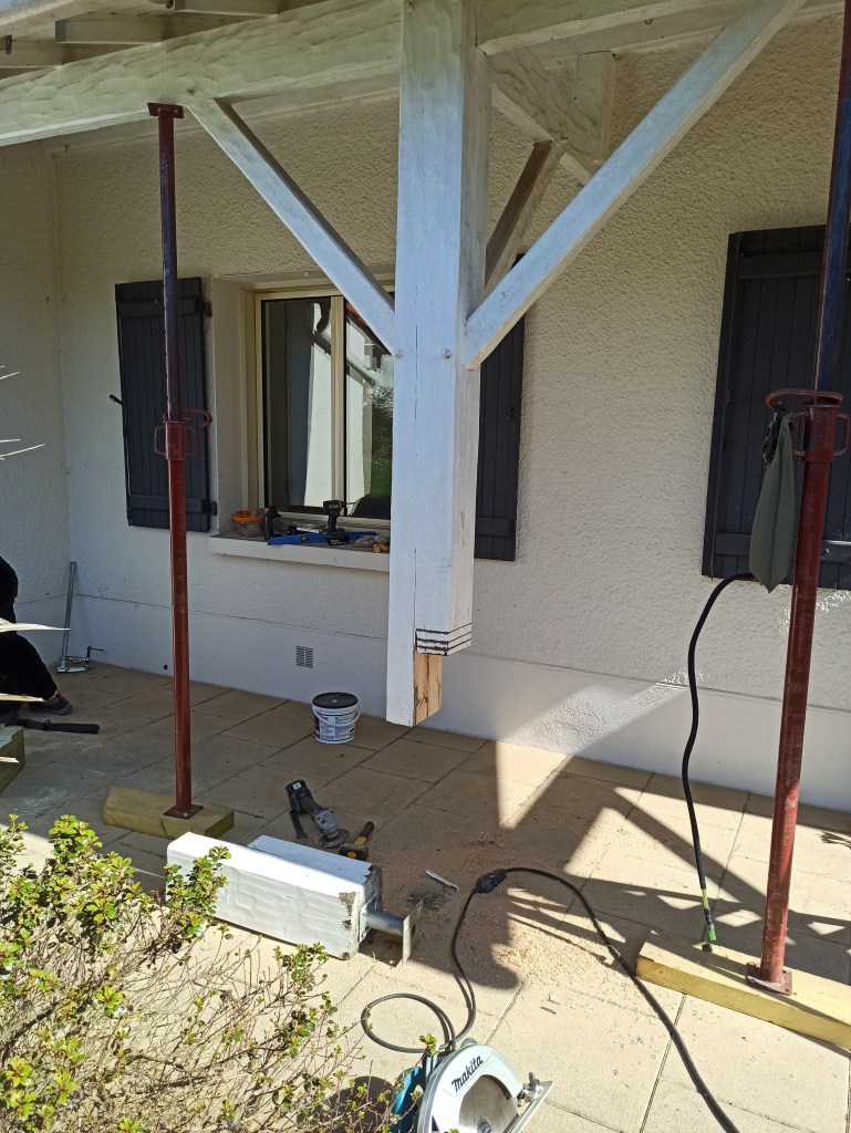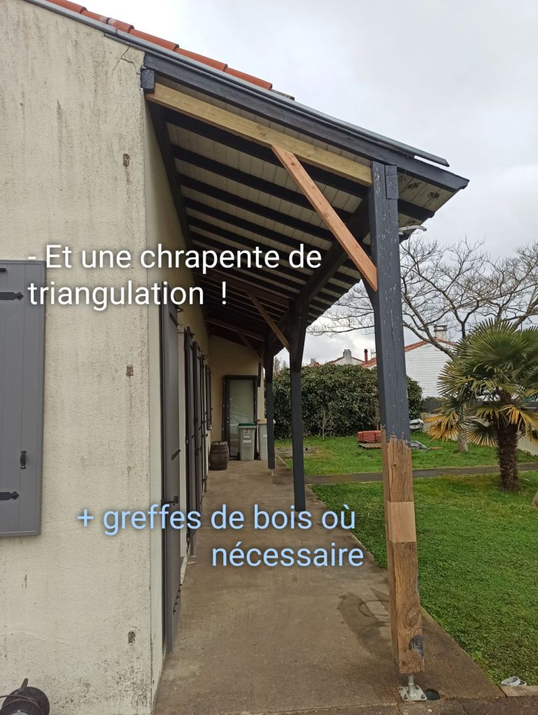3) Pour ce auvent dans une situation identique, il nous a même fallu réalisé une enture tant le pied avait bu. Voyez vous-mêmes…
