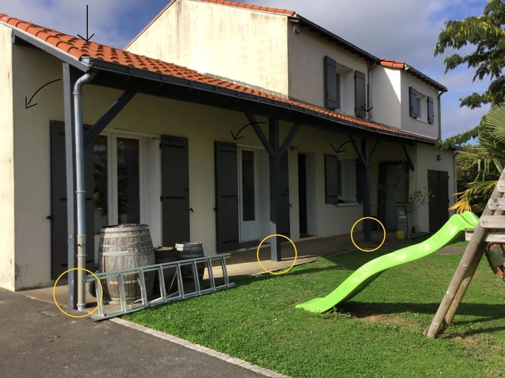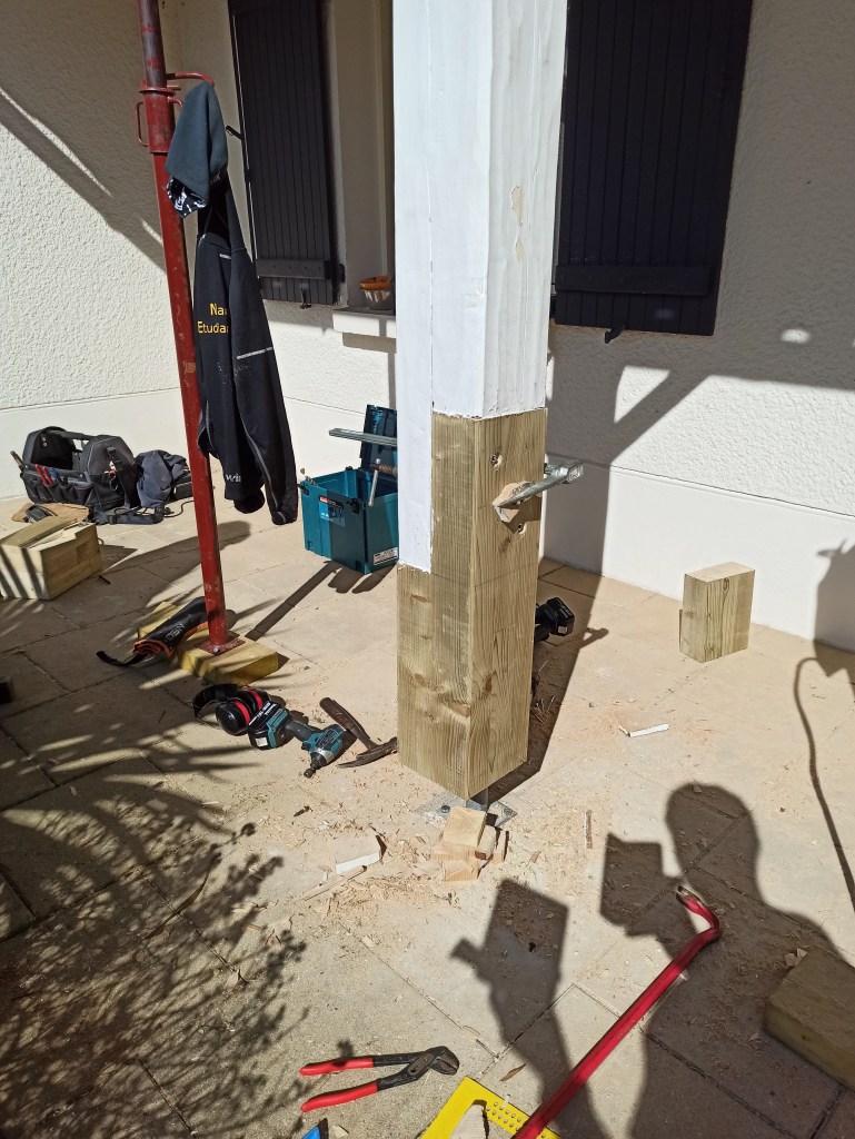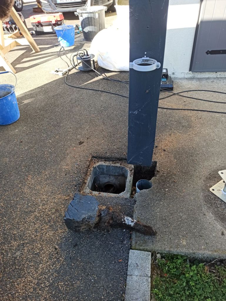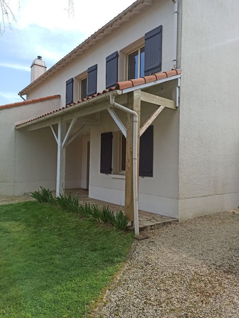 3) Pour ce auvent dans une situation identique, il nous a même fallu réalisé une enture tant le pied avait bu. Voyez vous-mêmes…