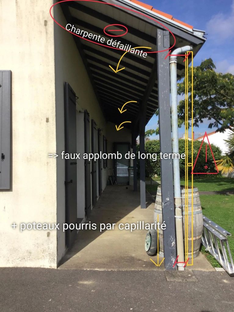 Mais pas seulement ! Vient s’ajouter en effet une conception défaillante de la charpente.