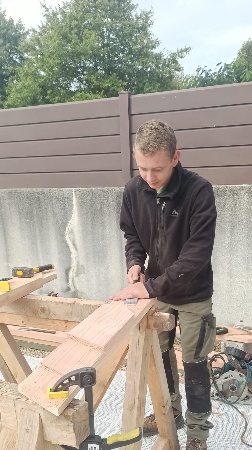 Depuis septembre 2025, Ghislain aussi fait partir de l’équipe, il est notre nouvel apprenti en CAP Charpente.